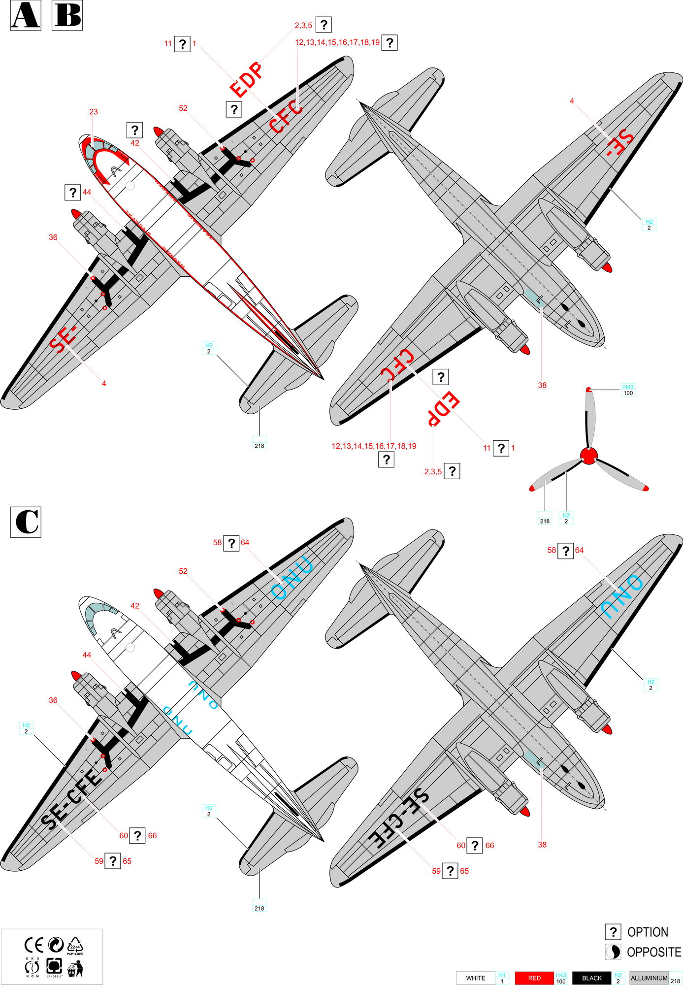 Decals options to make any of Trans Airs C-46 airframe - in either early or late livery PLUS version in UN service.