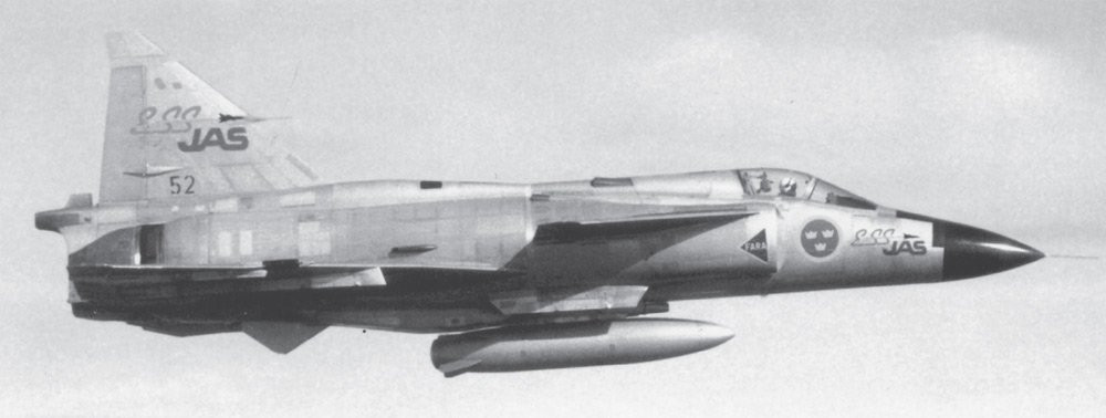 A modified #Viggen fitted with Electronic Control System, supporting development of JAS 39 Gripen. ESS JAS first flew 1982