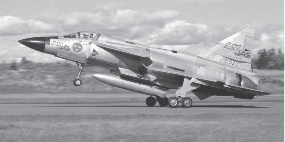 A modified #Viggen fitted with Electronic Control System, supporting development of JAS 39 Gripen. ESS JAS first flew 1982