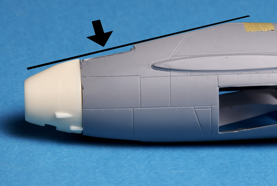 Man måste såga av modellens främre del och fylla i ett par mindre glipor runt huven med plasticard